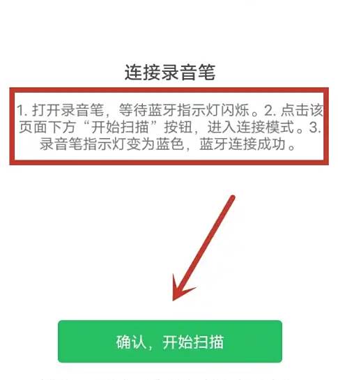 等待蓝牙闪烁,点击开始扫描,等待印象笔记连接录音笔完成。