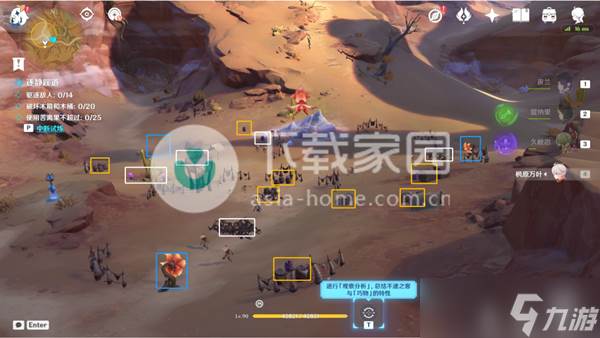 2、斯露莎要投掷苦离果,命中巧物,驱散丘丘人。
