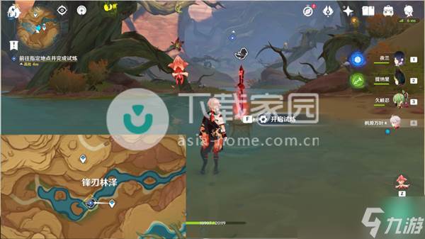 3、传送到峰刃林泽,往西南方向飞过去,开启试炼。