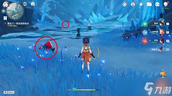 得知有几处被蓝色植物包围的古代坚冰,其中似乎隐藏着其他碎片,继续探寻雪山。