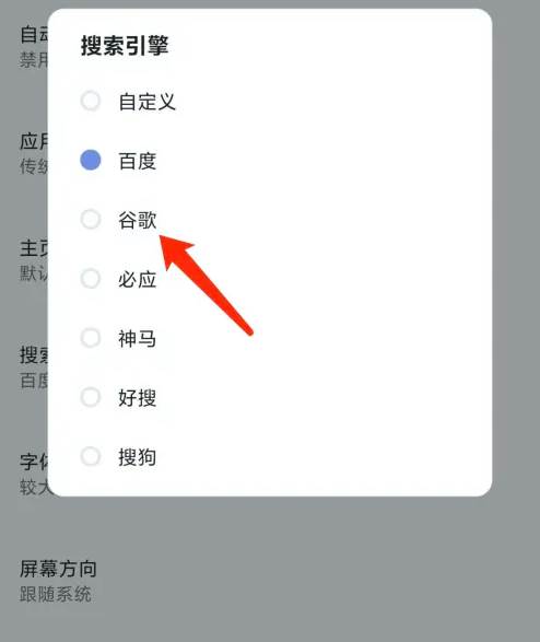 选择一个搜索引擎。