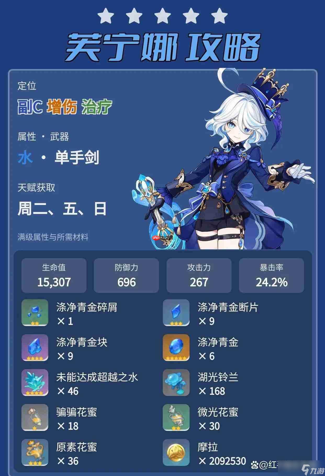五星角色:奈芙尔(月绽放体系主C)、水神芙宁娜(复刻)