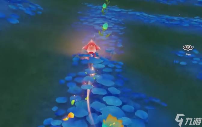 靠近触发对话后开启限时挑战,要在规定的时间之内抵达规定的最终目标点位,途中需要经过几个目标点位。直接拉面前的四叶印来到一个树木边上,最后通过弹跳菇跳上来,目标地点的黄色光柱非常明显。到达目标点位后,接着要往下一个点位走,也是一样的,直接拉四叶印,跳最后一个弹跳菇上去树木上的光柱边。最后的目标点在前方的大树上面,通过天空中的四叶印往前拉,拉到最后一个四叶印开翅膀降落倒大树上即可。接着往前走,最好别掉下去了,不然要重新拉四叶印上来,来到最前端的光柱后接着通过四叶印向前,来到最终的目标点位上,完成挑战。