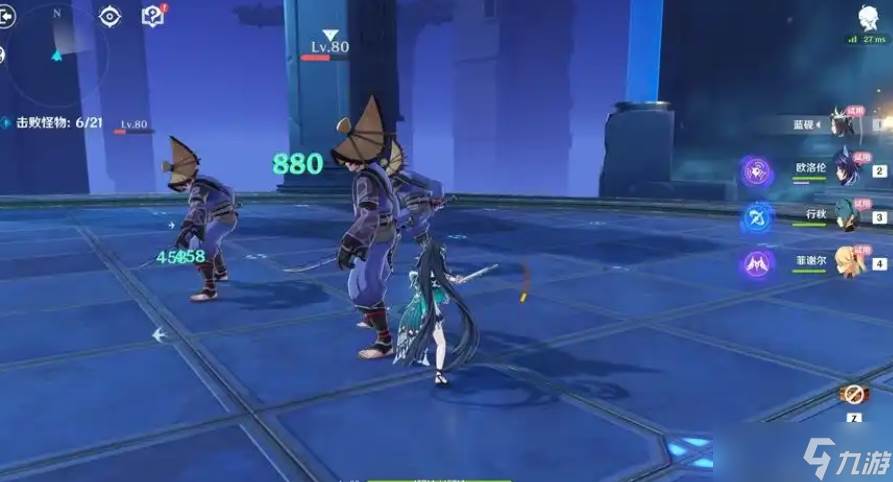 比如说向后跃起时按住W键,落点将向目标方向靠近,按住S键则是远离目标,表现为向后飞一大截,跃起后能再次点按战技或者普攻触发第二段战技。第二段是蓝砚将手中的环扔出去,环命中敌人的第一下才会产球,一次可以产三个球,两次战技连放能产六个球。扔环的动作有额外耗时,如果只是刷一个盾,点按战技后直接切人更快捷,环的三次攻击间隔会受到怪物体积的影响,怪物体积较小时命中间隔较长,体积较大时环的运动轨迹不会超出怪的模型。