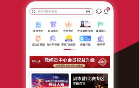 包括教练员的专业素养培训、以考代培,教练员岗位培训、证书申请,教练员等级认证的申请、查询等。