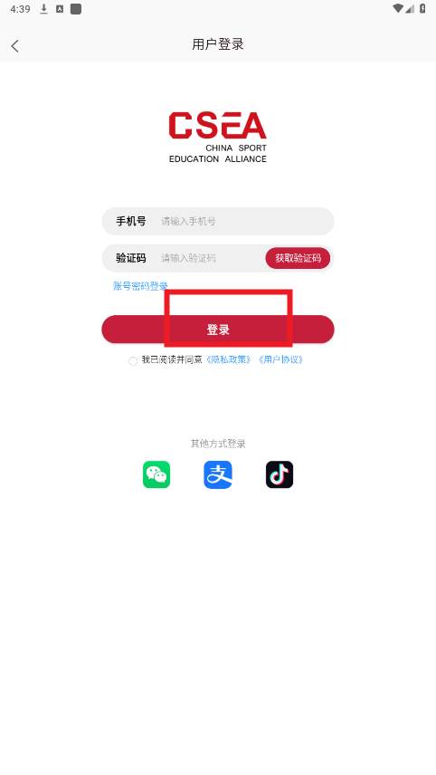 输入手机号和验证码,登录账号