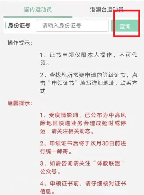 输入身份证号查询证书,然后点击申领证书