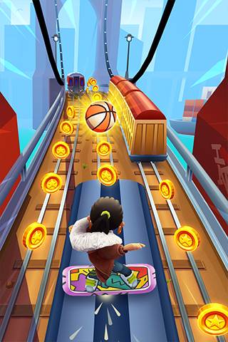 地铁跑酷免费版开启全新地铁场景,男孩不再只是一个人在铁轨跑酷,画面看起来很舒服,奔跑效果也很给力。可以来回穿插三个铁轨也可以再车厢上面奔跑,活动场景比较多!中途会遇到迎面开来的火车有很强的冲击力,另外穿插了道具系统只有穿鞋子才能从地面直接跳跃到车厢(经过多次试验)整体游戏可玩性非常强,已经超越了很多的跑酷游戏。竭尽全力冲刺!躲避迎面而来的火车!