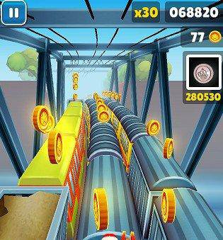 在奔跑的途中你会遇见迎面驶来的列车,你必须左右移动躲开它。遇到较矮的路障你必须跳过去,遇到较高的路障你必须钻过去。当然如果你吃到了逆天的气垫Nike鞋,你就可以直接跳上路障和迎面驶来的列车。