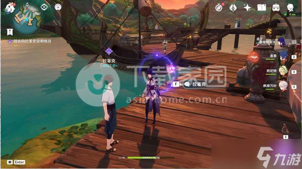 1、传送到须弥酒馆,走到码头那,和拉菲克对话开启任务。
