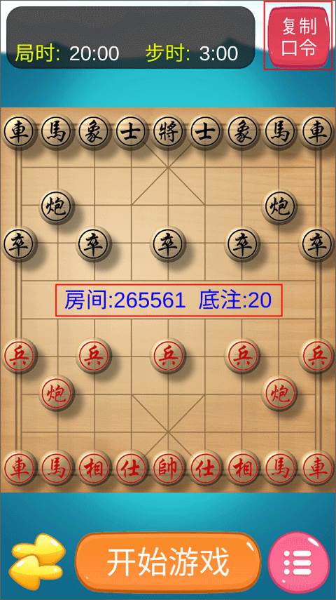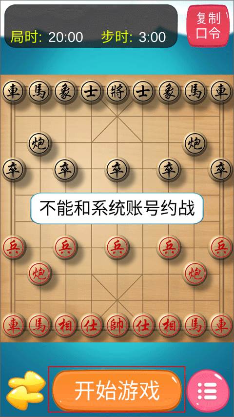 2、点击下方的“开始游戏”按钮,就可以复制口令给自己的好友来进行约战了,不过需要注意的是,不能和系统账号约战。