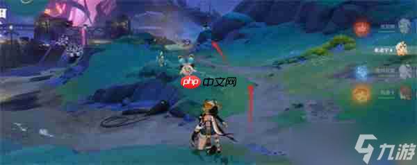 2、从神像平台下来后向右转,沿着泥泞小路一直前行,到达指定地点后会遭遇两只敌人。建议优先清理左侧的愚人众成员,避免战斗过程中受到干扰。