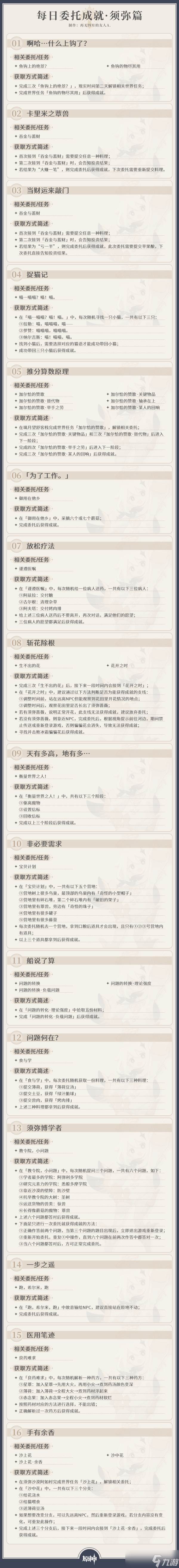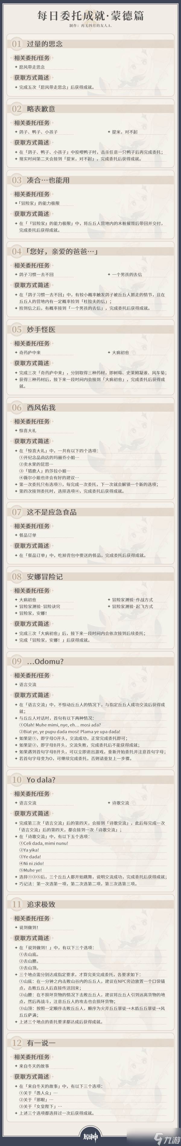 原神原神·成就丨截至V4.0,每日委托成就一图流汇总如下: