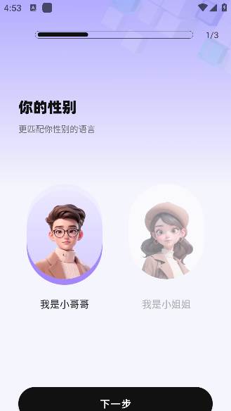 1、打开软件首先选择你的性别