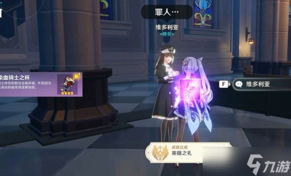 代开地图并传送到蒙德城左下方的那片区域,角色落地之后左转并朝着神像外围的围墙顶飞过去。落在围墙顶之后继续向着小地图正西方向的教堂跑过去,进入教堂之后在中央区域可以看到一位穿着黑色衣服的修女。与这里的黑衣修女对完话之后选择第三个关于蒙德的选项,点击之后就可以收获到四星的染血骑士之杯。收下之后返回地图并传送到覆雪之路正上方的那片区域,传过去之后方向不动并直行到营地附近的书桌那里。