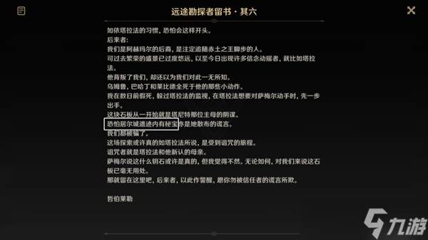 1、按照《远途勘探者留书·其六》地图的指引出发。