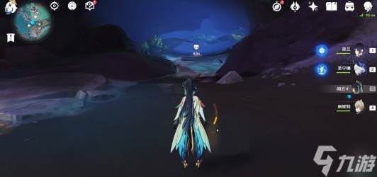 站在石头上往东北方向看,即可看到蕴光月幻蝶所在区域的洞口。可以从这里直接飞过去,或者往右侧走开启蓝珀湖的传送锚点再过去。