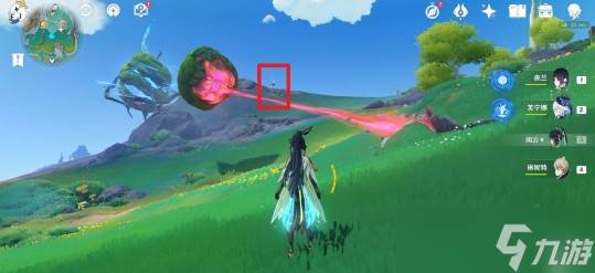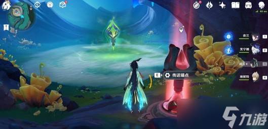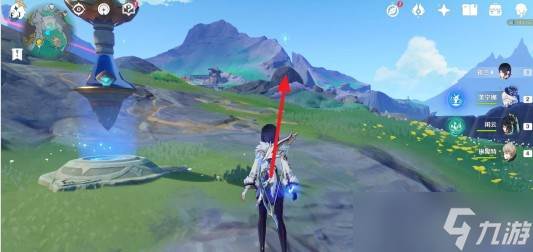 从伦波岛七天神像位置出发,往右上角草地处的传送锚点走。