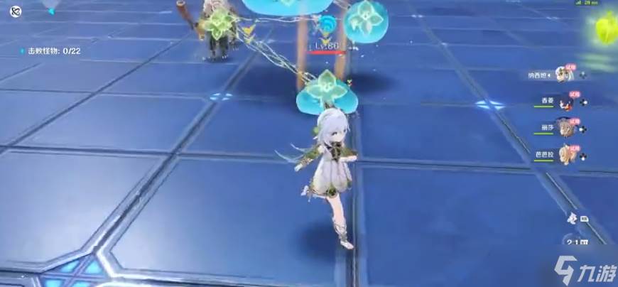 她的普攻最多四段连招,总计四次攻击判定,攻击范围是自身正前方的一小片长方形区域,有一定的高度判定,不过高度不是很高,跟神里绫华的战技一样只能攻击到温迪风眼中位置较低的怪物。普攻的攻击距离是固定的,比可莉丢炸弹的距离还稍微短一点,比自动索敌的距离也稍微短一点,实战中会出现普攻距离打不到怪的情况。纳西妲的重击是生成一个立方体对范围内的所有敌人造成一次草伤,没有锁定敌人的情况下立方体会出现在自身前方的固定位置,锁定敌人时会出现在敌人的位置。纳西妲战技有点按和长按两种释放方式,点按是以自身为圆心进行一次横扫造成一次草伤,被横扫命中的敌人会被挂上蕴种印,这是纳西妲的核心机制。