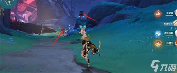 2、从神像出来后右转,沿着泥路一直走,抵达指定位置会遇到两只怪物。建议先清理掉左侧的愚人众,以免干扰。