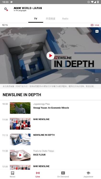 4、当然在“live”模板中还有NHK world 华语世界(NHK华语视界)功能