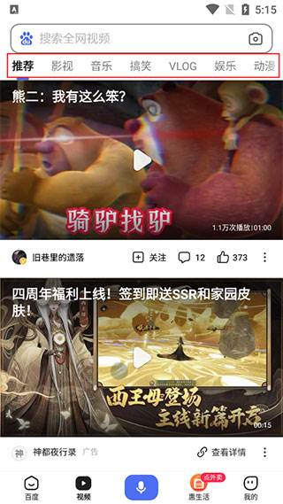 首页底部快速进入视频频道,海量明星娱乐、搞笑段子、经典剧集视频,还能拍小视频记录身边新鲜事,简单操作能拍又能看。