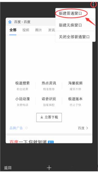 4、点击右上角的三个点,出现下拉栏,点击【新建普通窗口】就可以增加多个窗口。