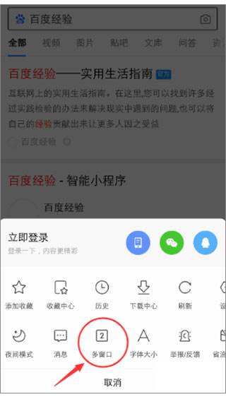 6、进入网页后,还是根据上面的步骤,点击下方的三条横线,再点击【多窗口】就可以查看多个窗口。