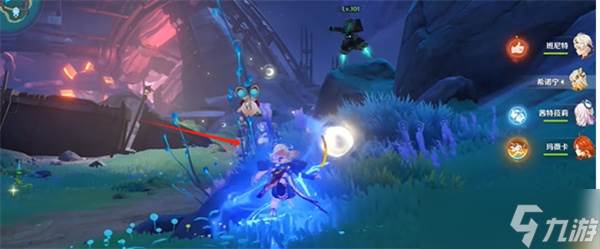 4、把怪清掉以后,站在图中植物旁边,让它为角色赋能。