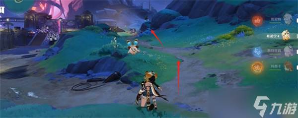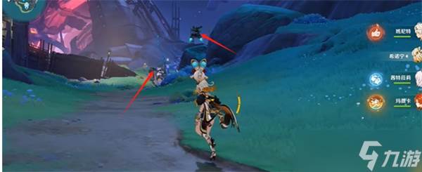 3、走到图中的位置会看到两个怪物,建议先把左侧的愚人众给清了。