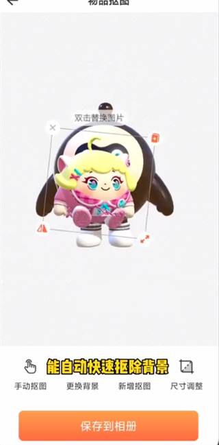 4、点击保存相册后,它会自动快速扣除背景;