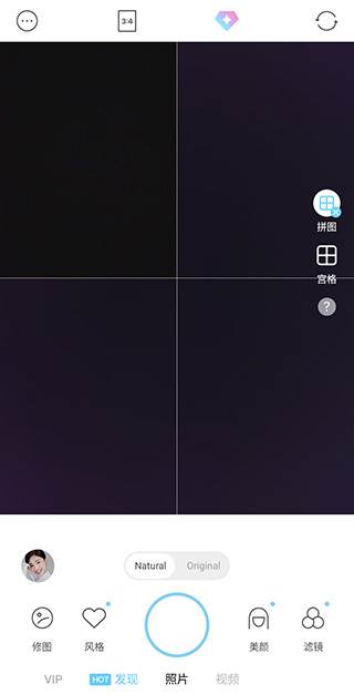 2、之后即可看到我们的拍照界面被分为了四个窗口,我们根据需求拍摄四张照片即可,拼图完成后的照片可以在左下角修图选项以及相册中查看