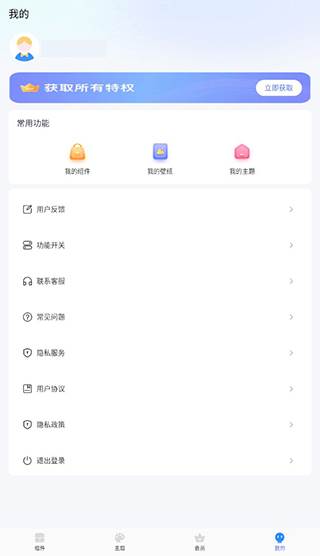 用户点击下方我的,即可进入个人中心,可以查看自己保存的小组件、壁纸和主题,也可以进行问题反馈等。