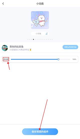 2、选择完之后,可以设置小组件的透明度,然后点击下方保存到我的组件,保存到我的组件库。