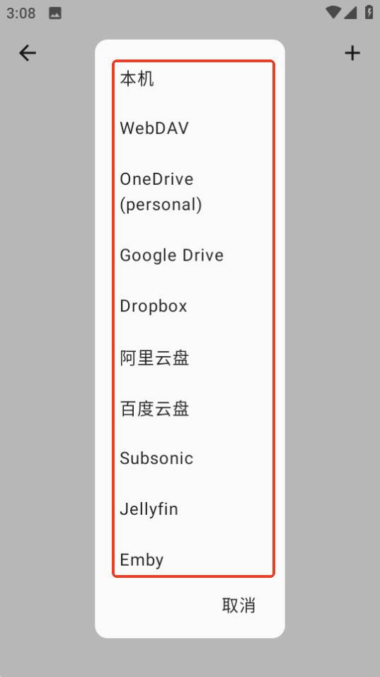 暂时支持阿里云盘、百度云盘、WebDAV、OneDrive、Google Drive、Dropbox。