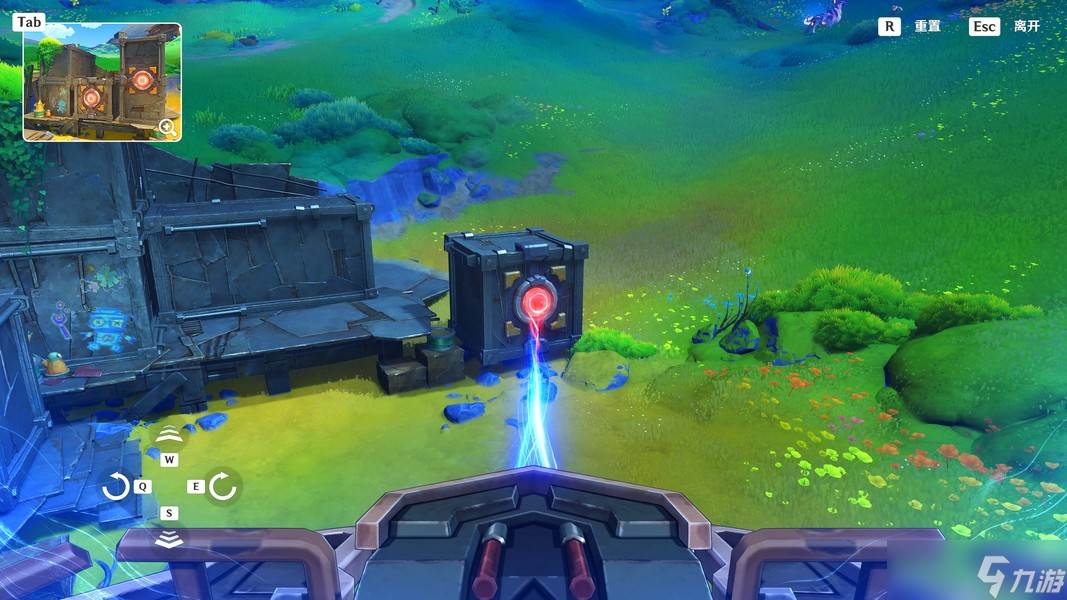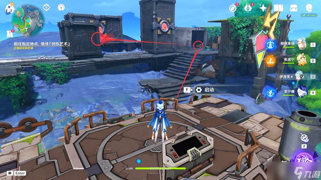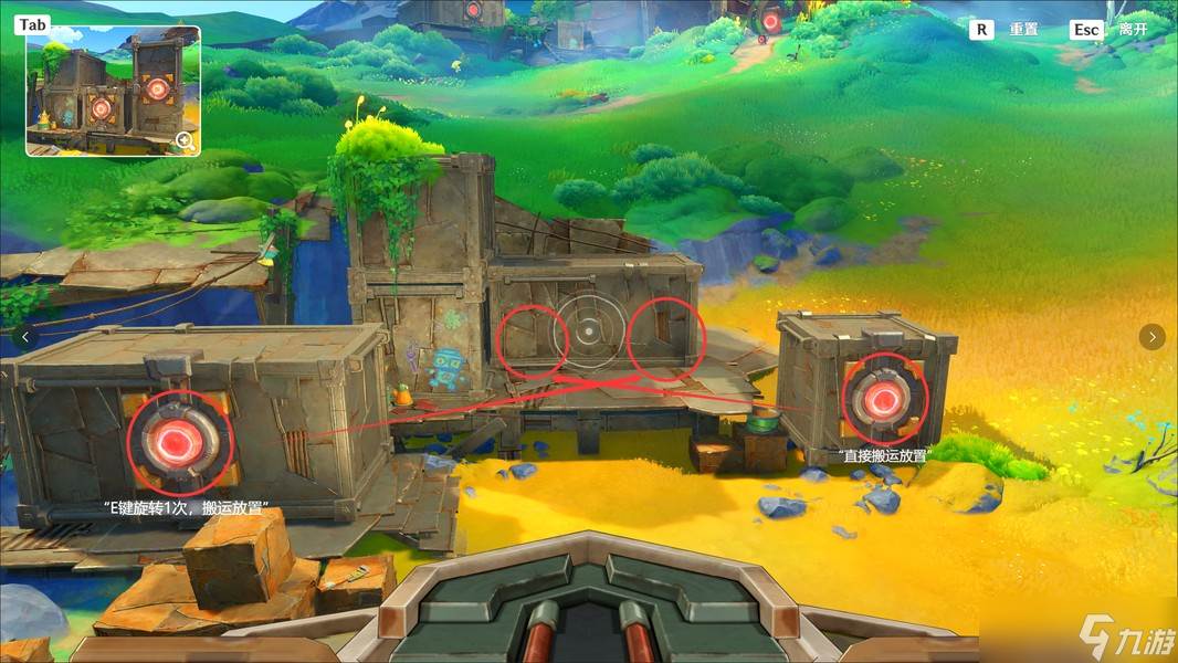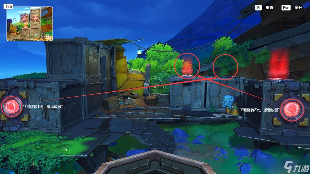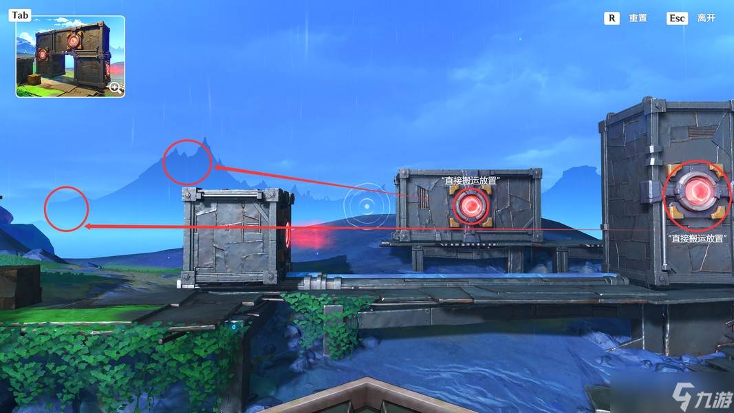 这里我们靠近「显像机关」,利用「月矩力」将集装箱推开,完成准备工作