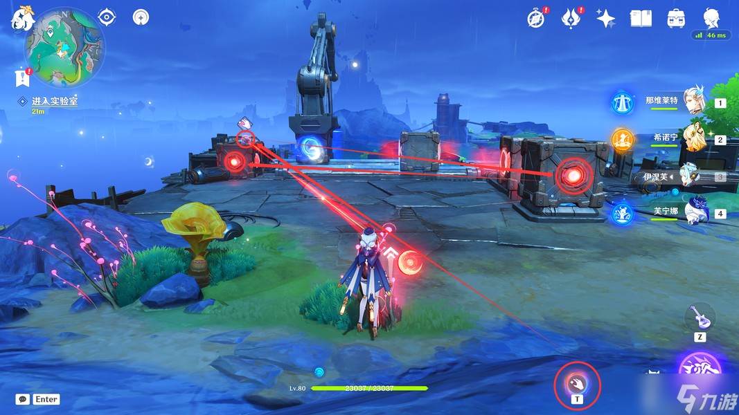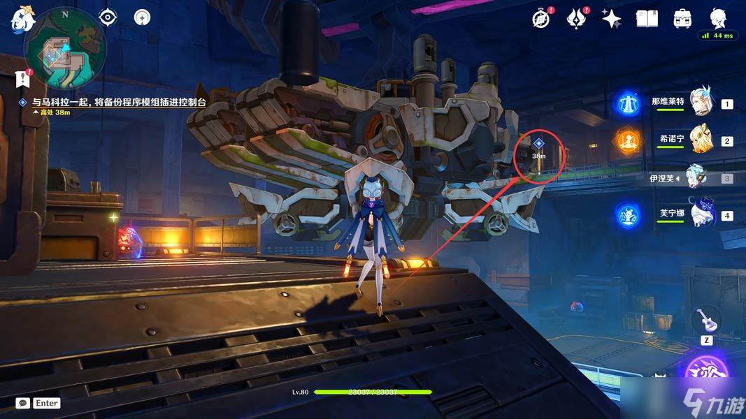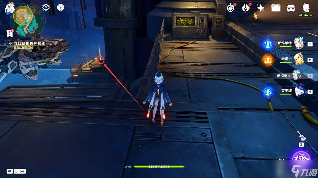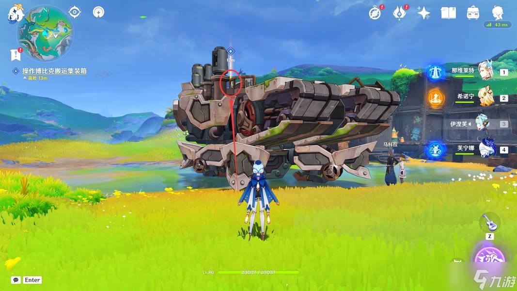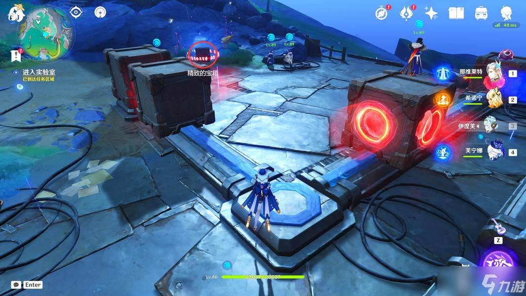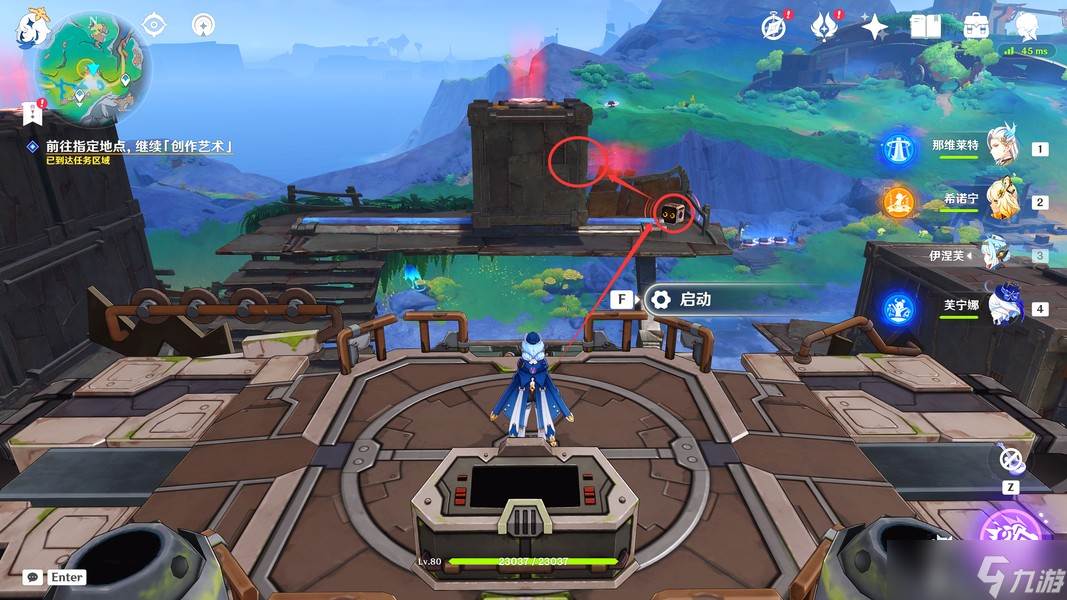 这里我们靠近「显像机关」,利用「月矩力」将集装箱推开,完成准备工作