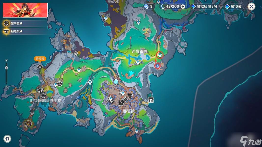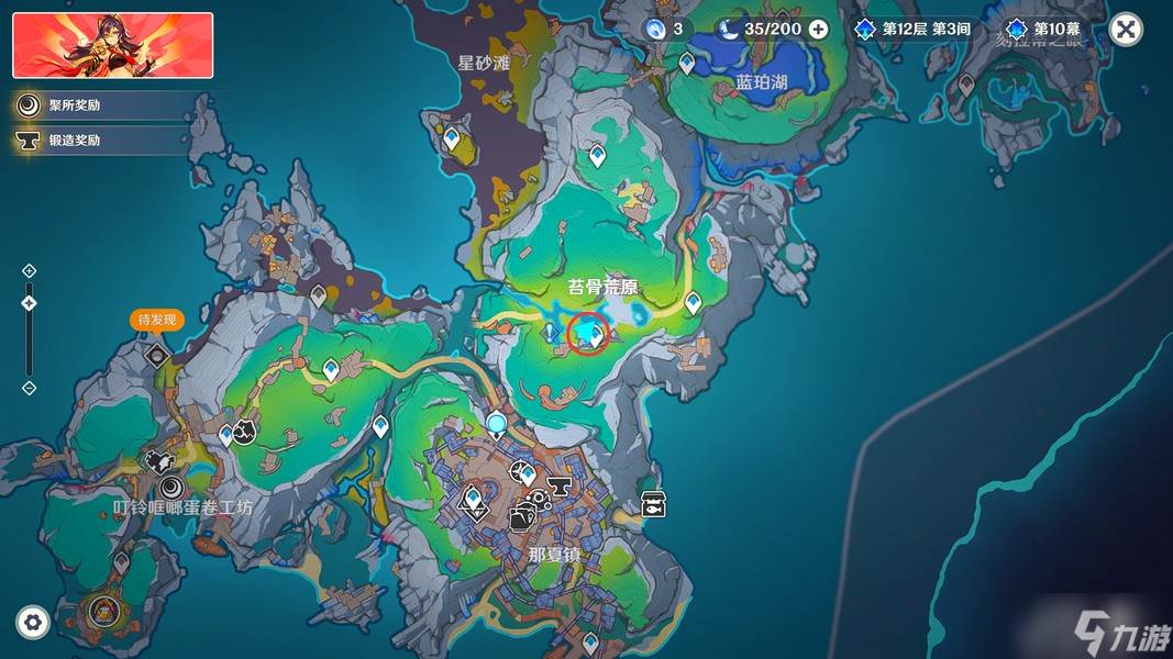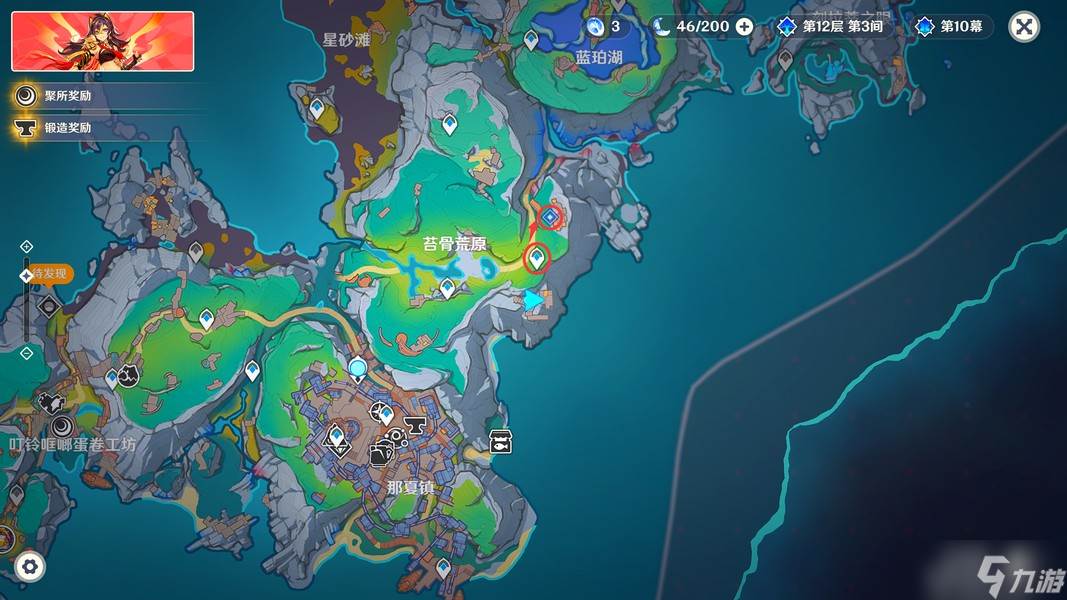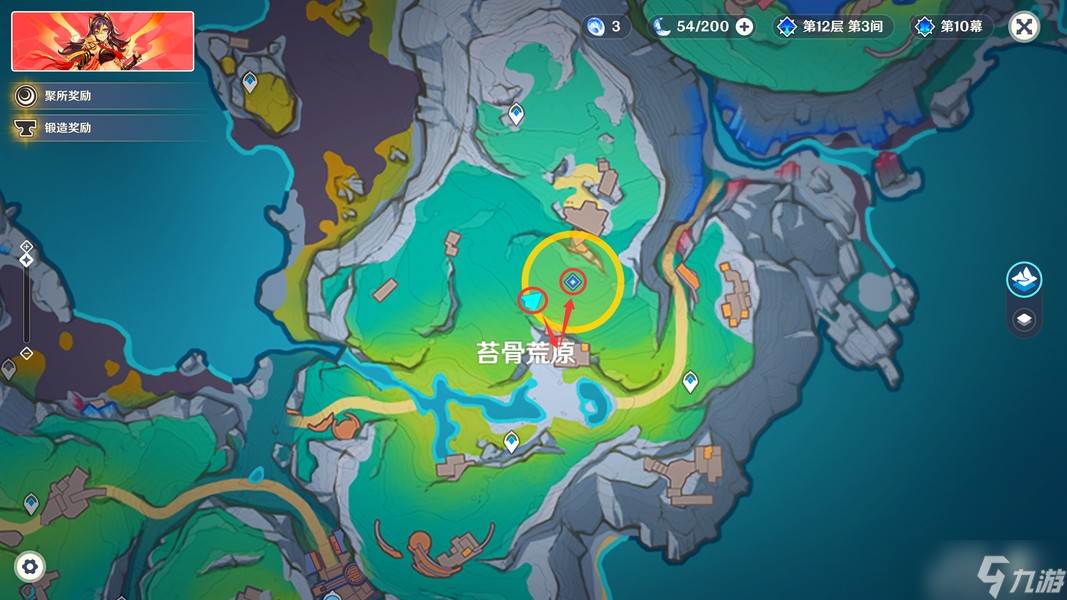 完成挑战后,我们传送到「苔骨荒原」正东方的锚点,来到下图位置