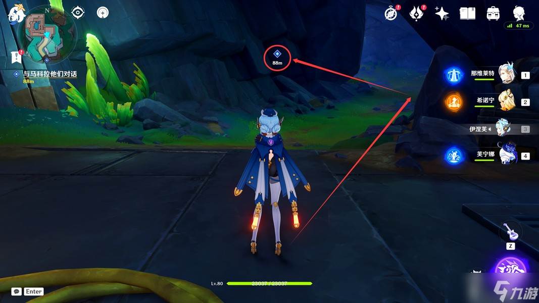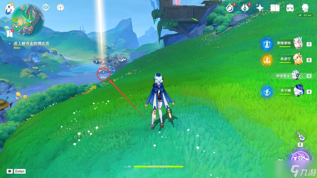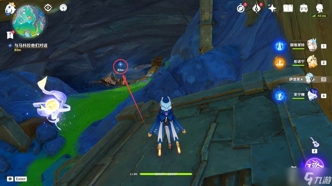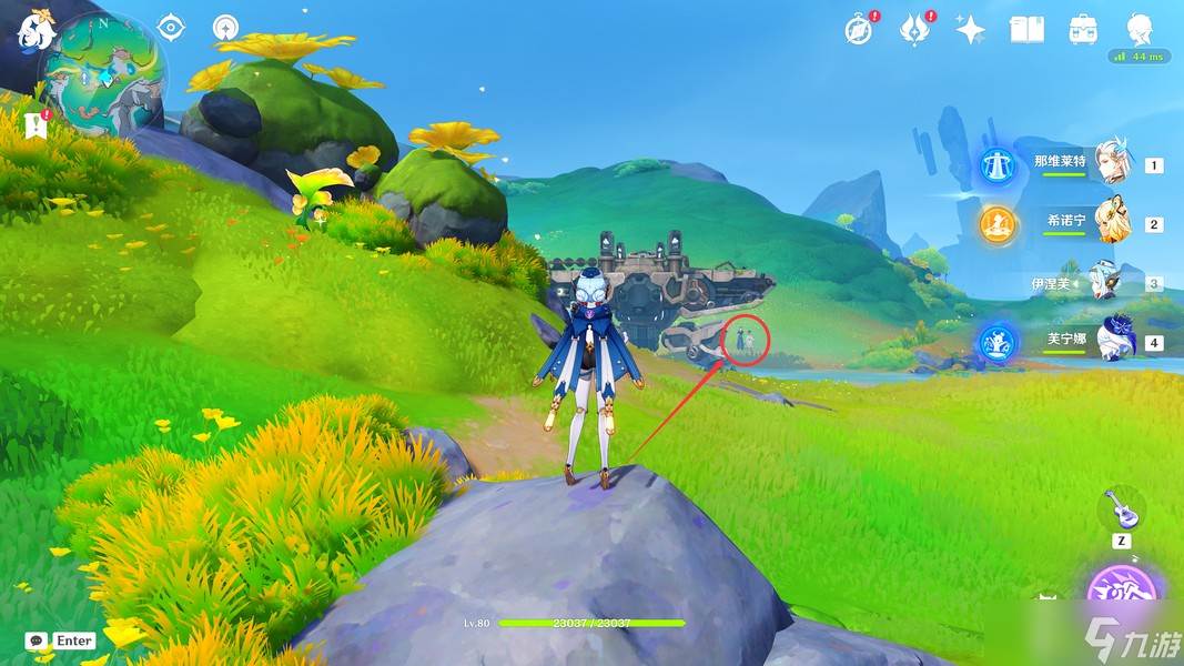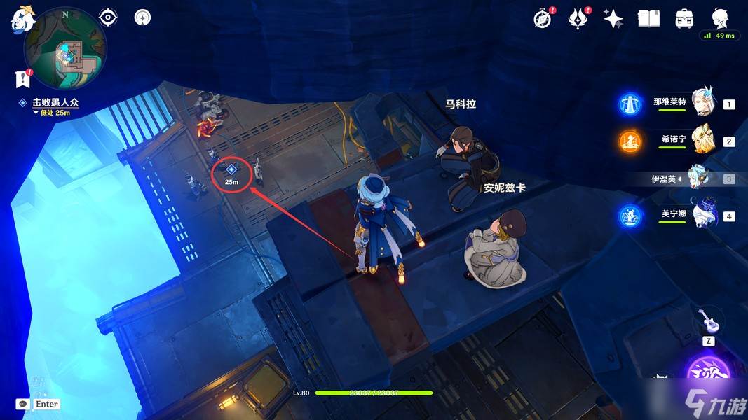 过完剧情后,我们先飞下去,将下方的愚人众击败(击败后会过一段动画)