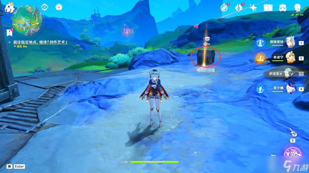 来到此处后,我们先将这里的愚人众全部解决掉(解决完愚人众后,我们获得一个精致的宝箱)