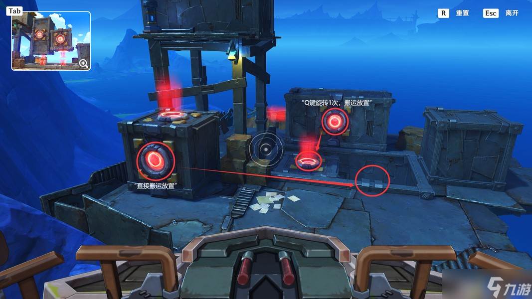 这里我们启动「显像机关」,利用「月矩力」将集装箱推开,完成准备工作