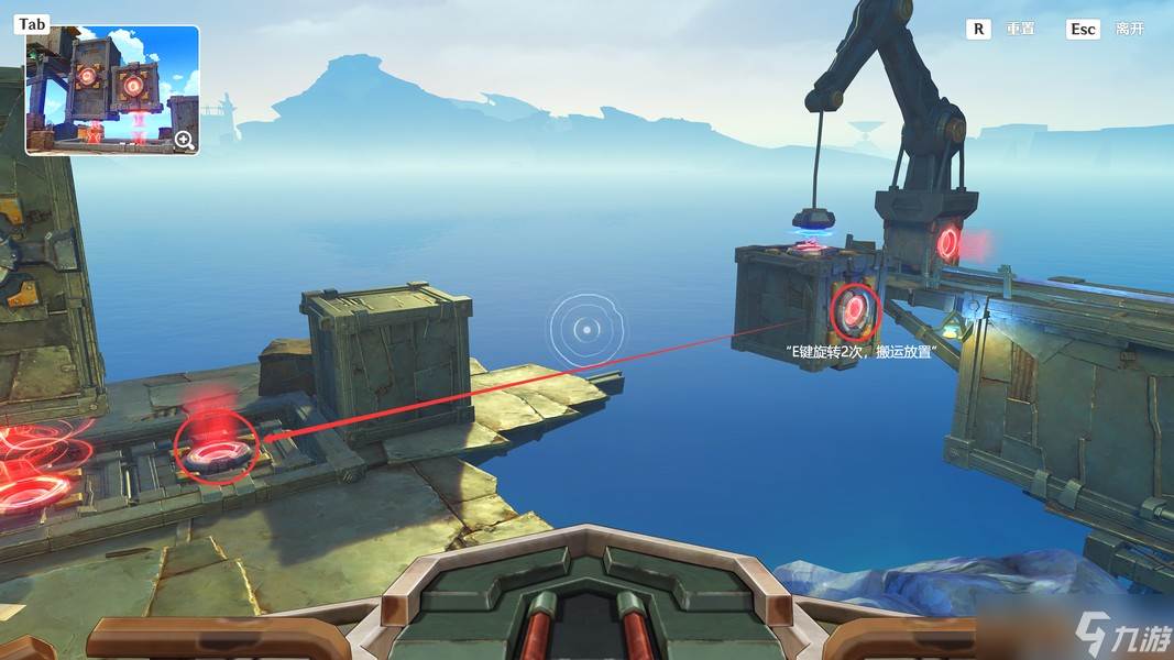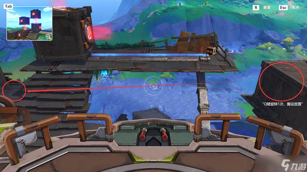 准备就绪后,我们操作博比克,先将平台上的集装箱按照左上角安妮兹卡给的图纸摆放好(具体操作如下图所示-第三处地点)