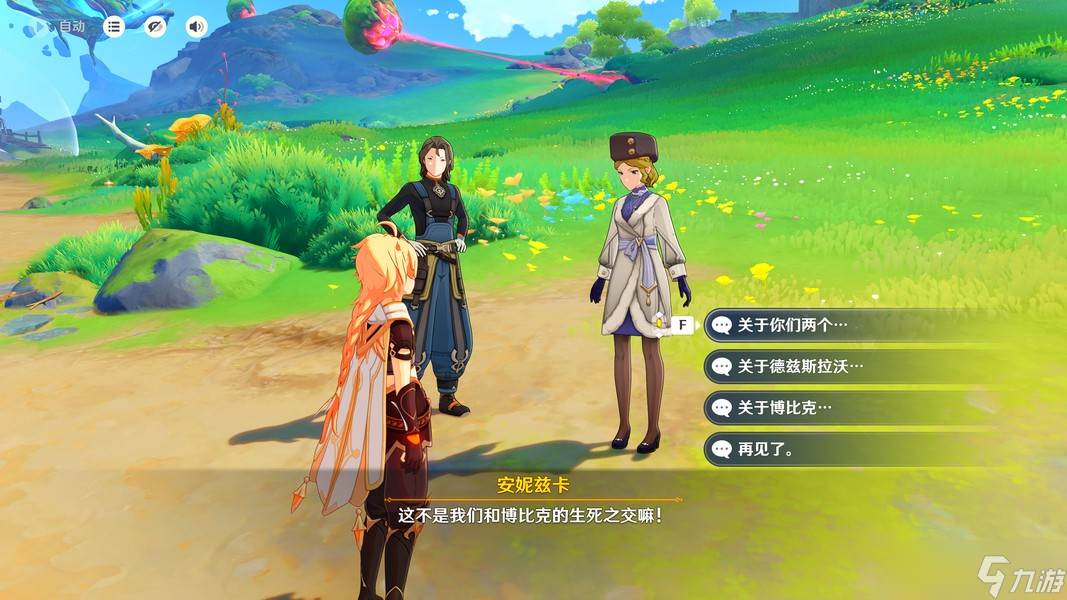 解决完愚人众后,我们与这里的光团交互,等待马科拉和安妮兹卡带着博比克过来