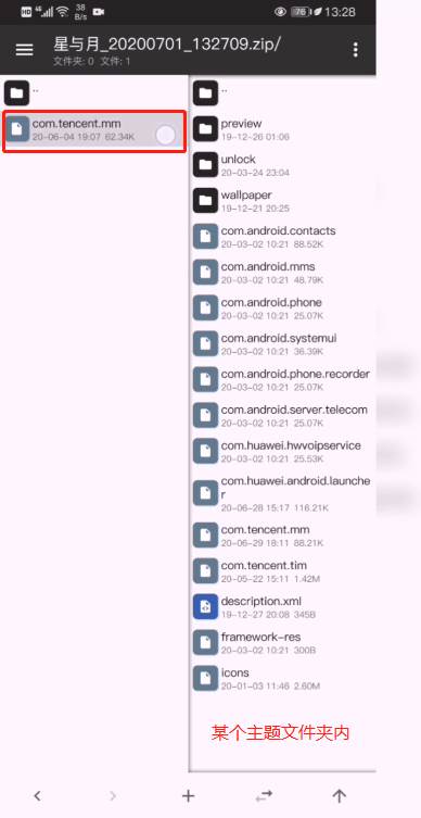 4、下载完成后,打开MT管理器,在左侧找到我们下载的气泡主题所在文件夹,点击进入显示【.mm】文件,然后在右侧找到华为手机主题的文件夹【HUAWEI - Themes】,然后随便选择一个主题进入(注意不能使用付费的主题,只能使用免费的和第三方主题);