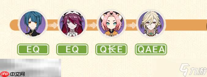 2、输出手法:行秋释放EQ技能 → 接着罗莎莉亚使用EQ → 随后迪奥娜开启Q并长按E → 最后由卡维释放QAEA连招,之后按序循环