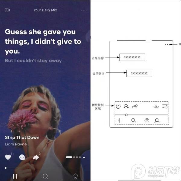 音乐的切换则是和抖音短视频一样,采用手动上下滑屏的方式,这也是目前视频音乐App主要的歌曲切换方式。