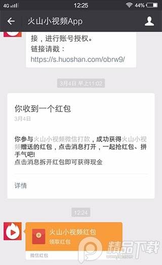 基本提现之后是会立即到账的,这时候就需要打开微信(首先,要关注下火山小视频app)会显示火山给发了个红包,进去之后领取即可,余额可到我的钱包查看
