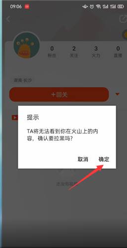 4、在弹出的窗口点击拉黑,确认拉黑即可移除粉丝。
