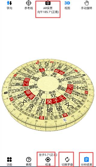 3.该功能不仅可以精确测量方向,还能显示不同风水元素在空间中的分布,帮助用户准确判断各个方位的风水状况。