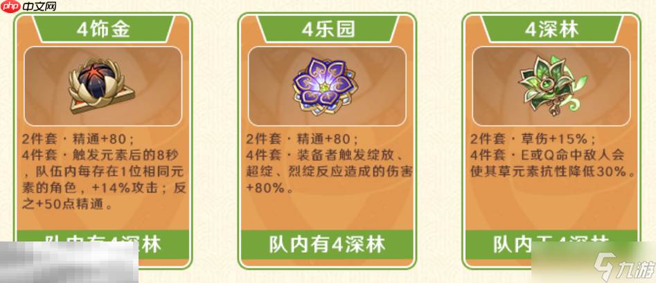 圣遗物方面,若队伍中没有深林的记忆持有者,建议卡维佩戴深林四件套以触发草伤加成;若已有深林角色,则推荐饰金之梦四件套或乐园遗落之花四件套。主属性优先选择元素精通与元素充能效率,其中饰金套在激化绽放流派中表现尤为出色,是当前版本最推荐的玩法之一。